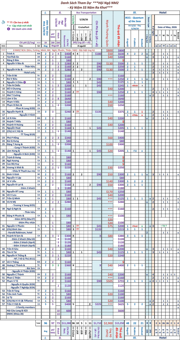 • Cập nhật: Trang Danh Sách Tham Dự nầy sẽ được thường xuyên cập nhật khi có các chi tiết cần sửa đổi.