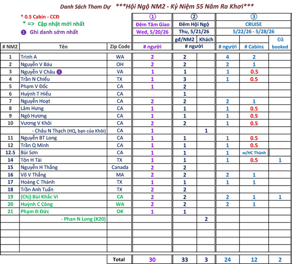 - Cập nhật: Trang Danh Sách Tham Dự nầy sẽ được cập nhật thường xuyên và nhanh nhất.